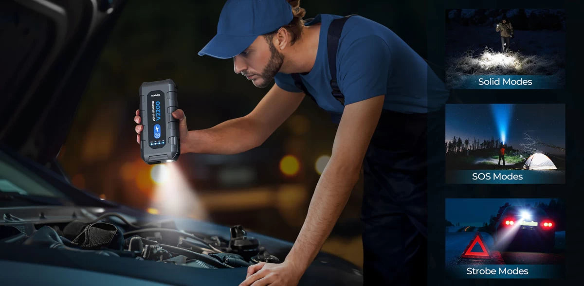 Παρουσιάζουμε το TOPDON V2200, έναν εξαιρετικό φορητό εκκινητή μπαταρίας που έχει σχεδιαστεί έτσι ώστε να παρέχει εντυπωσιακό ρεύμα αιχμής 2200A για ταχεία φόρτιση μπαταριών μολύβδου οξέος 12V μέσα σε δευτερόλεπτα. Αυτή η ευέλικτη συσκευή εξασφαλίζει άμεση και ασφαλή ανάφλεξη για μεγάλη ποικιλία οχημάτων, όπως αυτοκινήτων, σκαφών, μοτοσυκλετών και φορτηγών. Με εντυπωσιακή συμβατότητα με βενζινοκίνητα οχήματα έως 8,0L και πετρελαιοκίνητα οχήματα έως 6,0L, είναι ο τέλειος σύντροφος για κάθε ανάγκη που έχετε για ισχύ.
