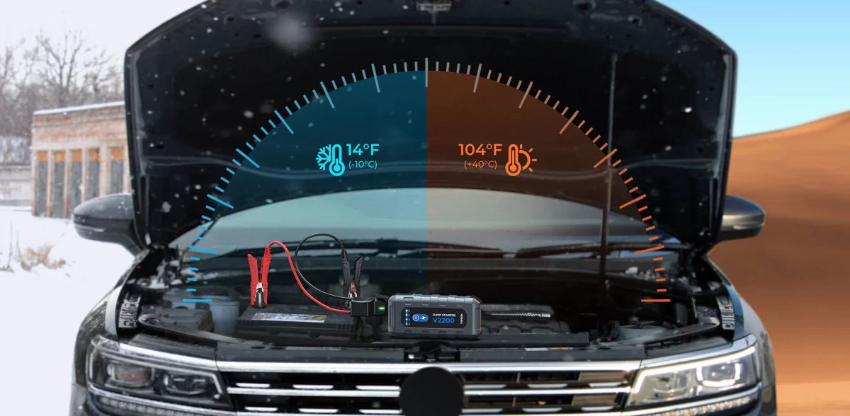 Η κατασκευή, ο σχεδιασμός και τα κυκλώματα υψηλής ποιότητας του V2200 είναι σε θέση να χειριστούν την πρόκληση της εκκίνησης μπαταριών αυτοκινήτων σε ακραίες θερμοκρασίες από -10°C έως περίπου 40°C.