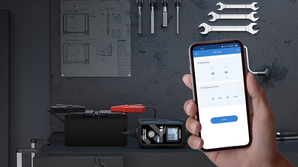 Η φόρτιση και η δοκιμή μπαταριών είναι αλληλένδετες, αλλά μέχρι τώρα απαιτούσαν ξεχωριστά εργαλεία. Η TOPDON έθεσε ως στόχο να σχεδιάσει ένα εργαλείο που μπορεί να κάνει και τις δύο λειτουργίες για να μπορείτε να ελέγξετε τις μπαταρίες σας πριν από τη φόρτιση, έτσι ώστε να έχετε μια ολοκληρωμένη άποψη για την κατάσταση υγείας ολόκληρου του συστήματος φόρτισης, χωρίς την ταλαιπωρία της μεταφοράς πολλών εργαλείων. Προτεραιότητά μας ήταν να δημιουργήσουμε ένα εργαλείο φιλικό προς τον χρήστη, γι αυτό προσθέσαμε μια λειτουργία έξυπνης φόρτισης 9 βημάτων, ώστε να μπορείτε να το ρυθμίσετε και να το ξεχάσετε. Δεν χρειάζεται πλέον να ανησυχείτε για την υπερφόρτιση και την καταστροφή της μπαταρίας σας. Μπορείτε να παρακολουθείτε την κατάσταση της φόρτισης χρησιμοποιώντας το smartphone σας και τη διαισθητική εφαρμογή μας, όπου προσφέρονται επίσης προηγμένες ρυθμίσεις επαγγελματικού επιπέδου, όπως η ρύθμιση της τάσης και της έντασης. Το TB6000Pro είναι ιδανικό τόσο για επαγγελματίες τεχνικούς όσο και για ερασιτέχνες, καθώς διαθέτει τις προσαρμοσμένες ρυθμίσεις που χρειάζονται οι επαγγελματίες και τις έξυπνες ρυθμίσεις που αναμένουν οι ερασιτέχνες.